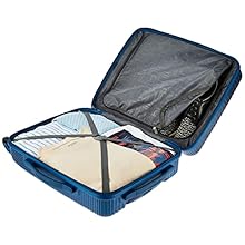 Cross ribbons in bottom compartment and U-shaped pocket for maximum packing space